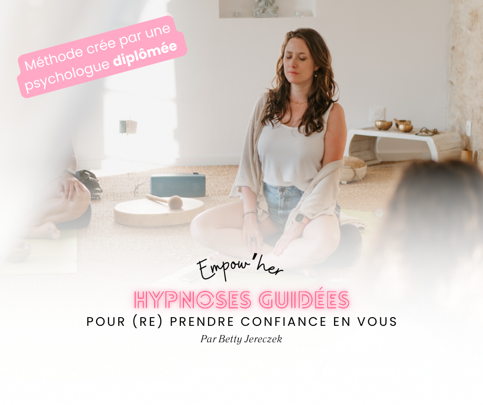 Empow’Her est un pack d’audioguidés d’hypnose accompagné de 8 exercices pratiques, conçu pour soutenir un travail personnel autour de la confiance en soi.