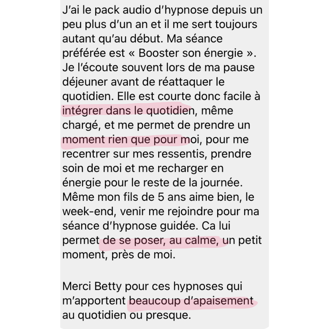 J'ai le pack audio d'hypnoses depuis plus d'un an et il me sert toujours autant.