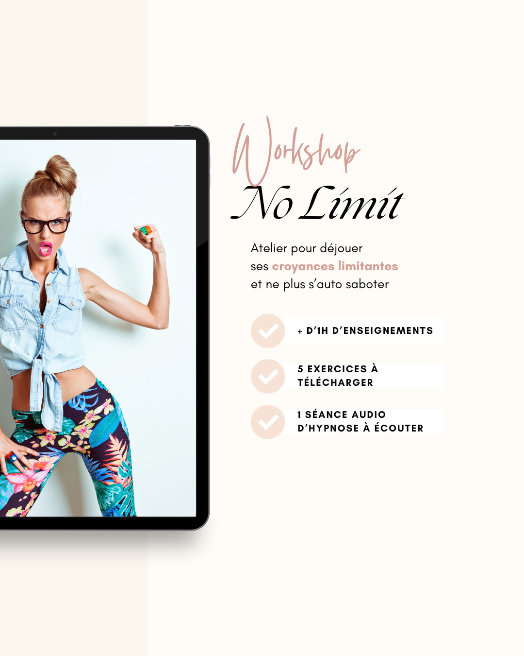J'ai créé le Workshop No Limit pour toutes les femmes qui sont fatiguées d'elles mêmes et qui rêvent de pouvoir vivre plus sereinement et plus confiante.